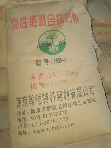 南京翰德特種建材有限公司是一家集開發、生產、銷售、管理于一體的現代化企業。我公司專業生產高強無收縮灌漿料,現擁有客運專線專用型、H-40、H-60、CGM、特種灌漿料等五大系列。 我公司成立以來,通過技術創新、完善企業經營管理,客戶已遍及江蘇、山東、河南、浙江、福建等省市,目前公司產品年生產能力30000。已有多項規格品種產品分別獲國家專利、省市名牌,并被列為國家星火計劃、國家火炬計劃,產品產銷量居全國同行業前列,已形成以南京、阜陽兩大生產基地為主體,以南京翰德特種建材有限公司為前沿,兩地互為依托、同步推進的產業發展格局。